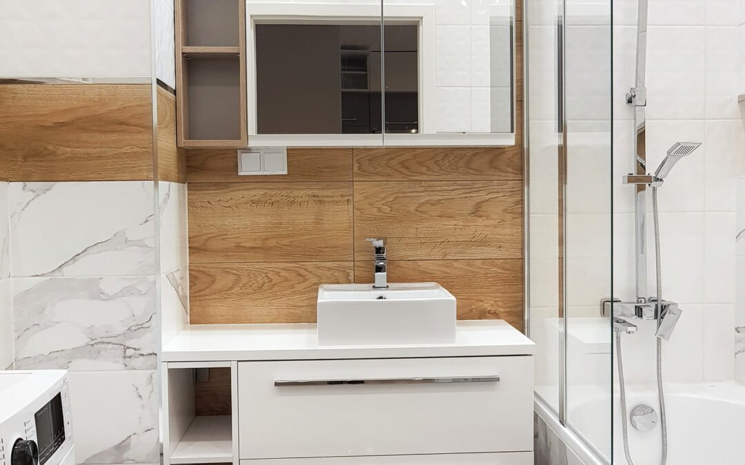 łazienka w drewnie bieli i marmurze