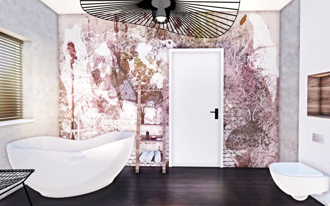 łazienka z fototapetą
