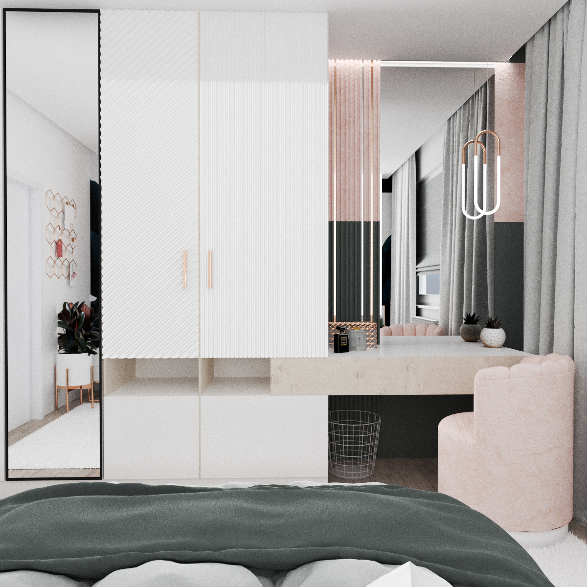 sypialnia pastelowy róż